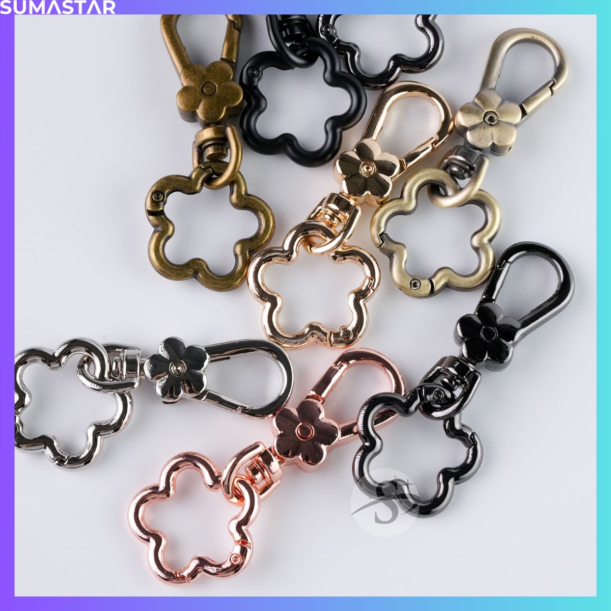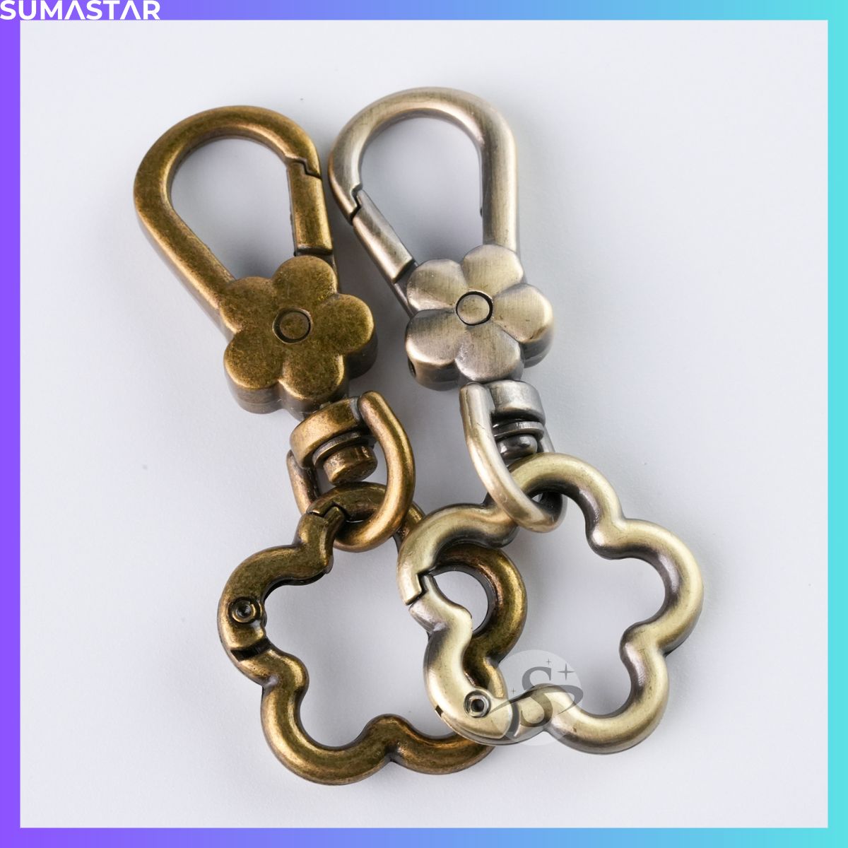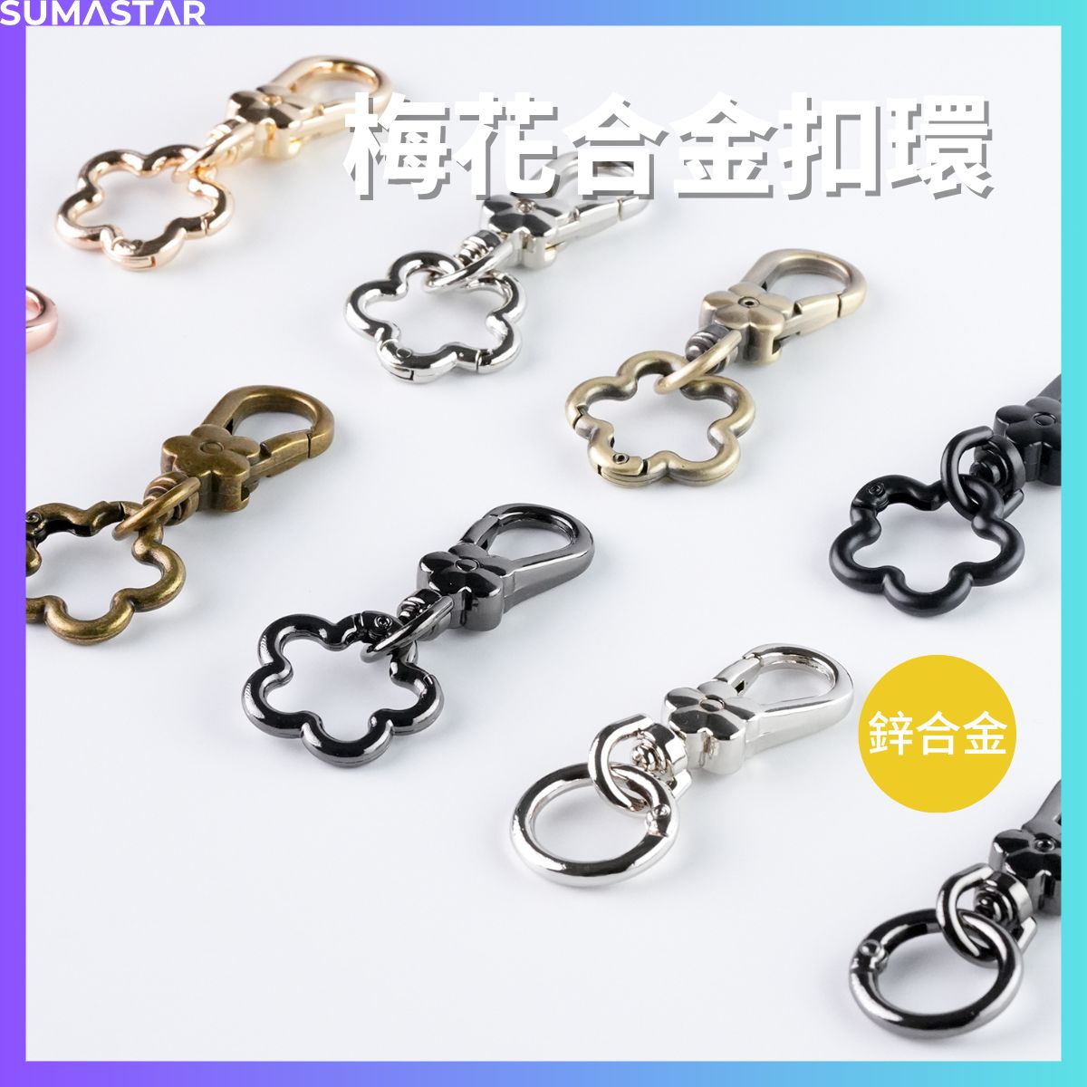 花扣環 梅花 彈簧扣 花朵 造型 五金 鑰匙圈 DIY 古掃 古銅 金屬 掛繩 掛鉤 鑰匙扣、顏色齊全,質感優良。適合 DIY 配件、掛繩配件、狗扣等使用。