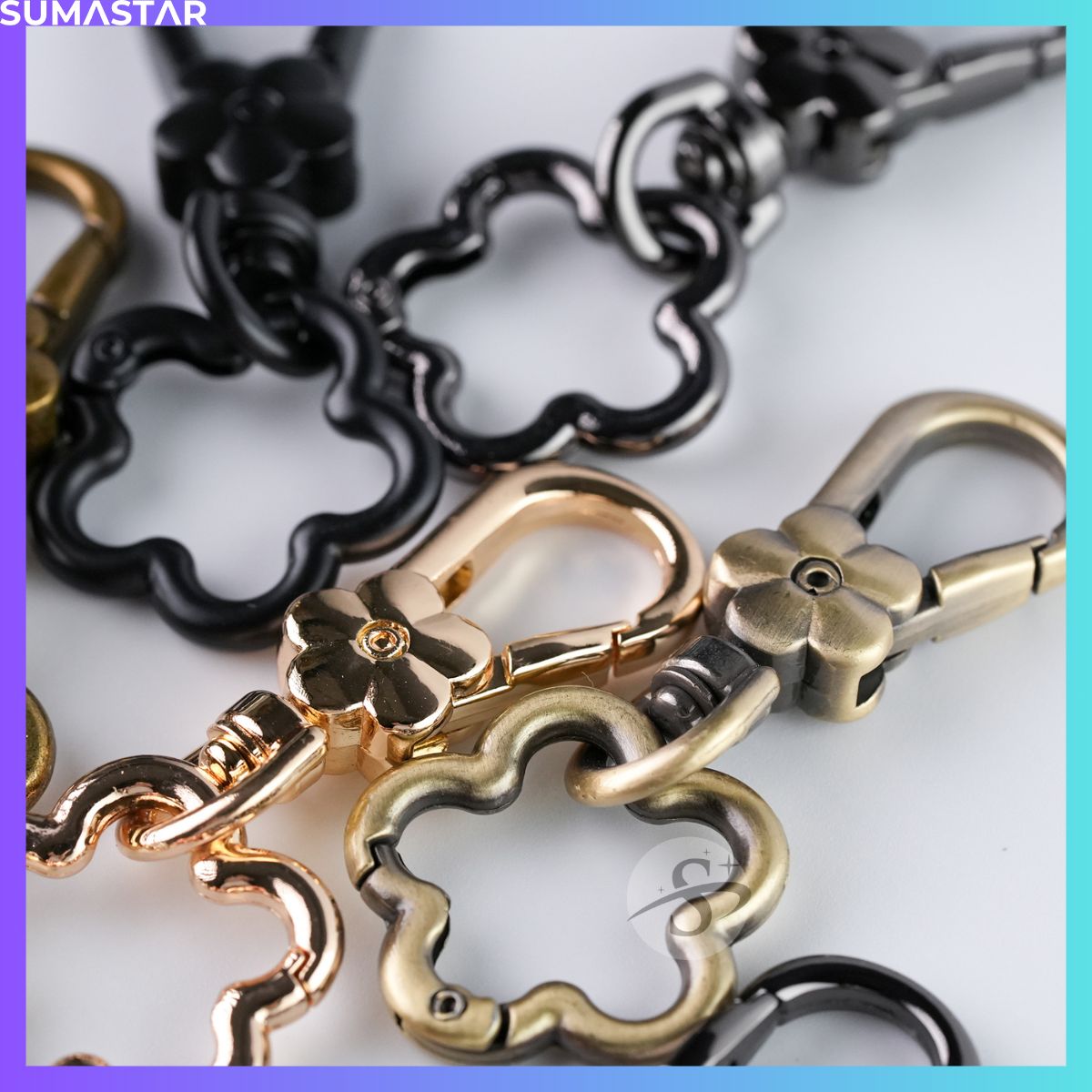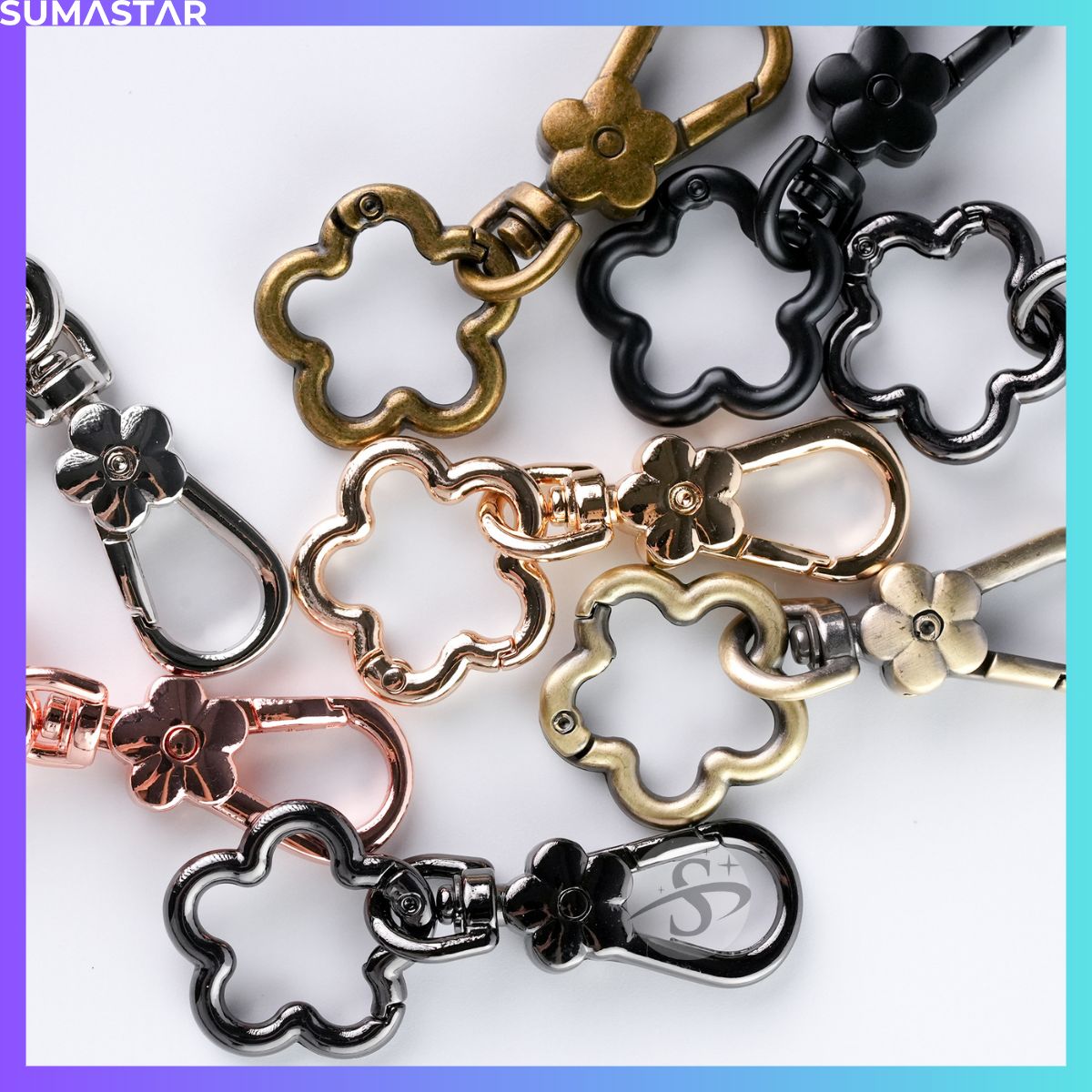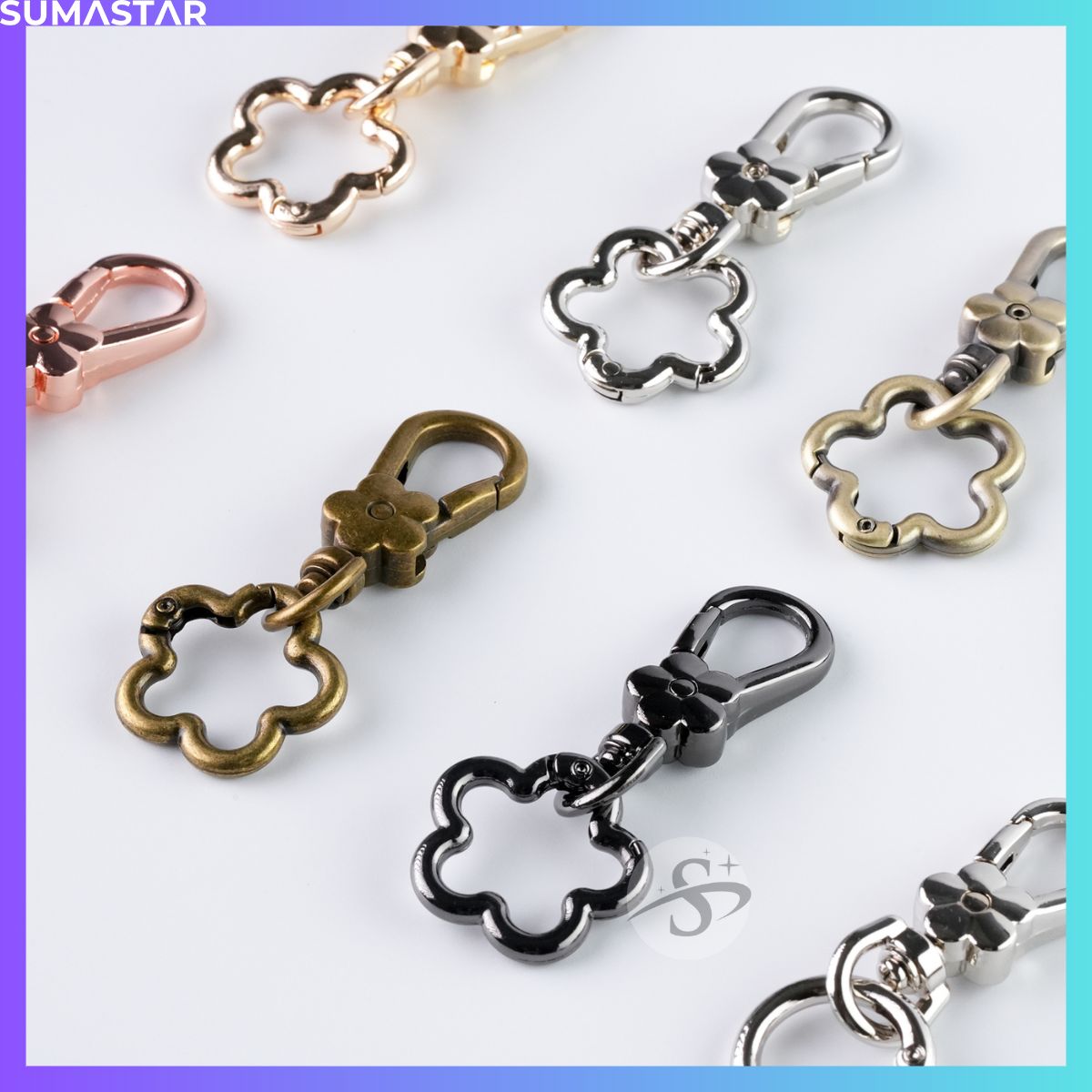 花扣環 梅花 彈簧扣 花朵 造型 五金 鑰匙圈 DIY 古掃 古銅 金屬 掛繩 掛鉤 鑰匙扣、顏色齊全,質感優良。適合 DIY 配件、掛繩配件、狗扣等使用。